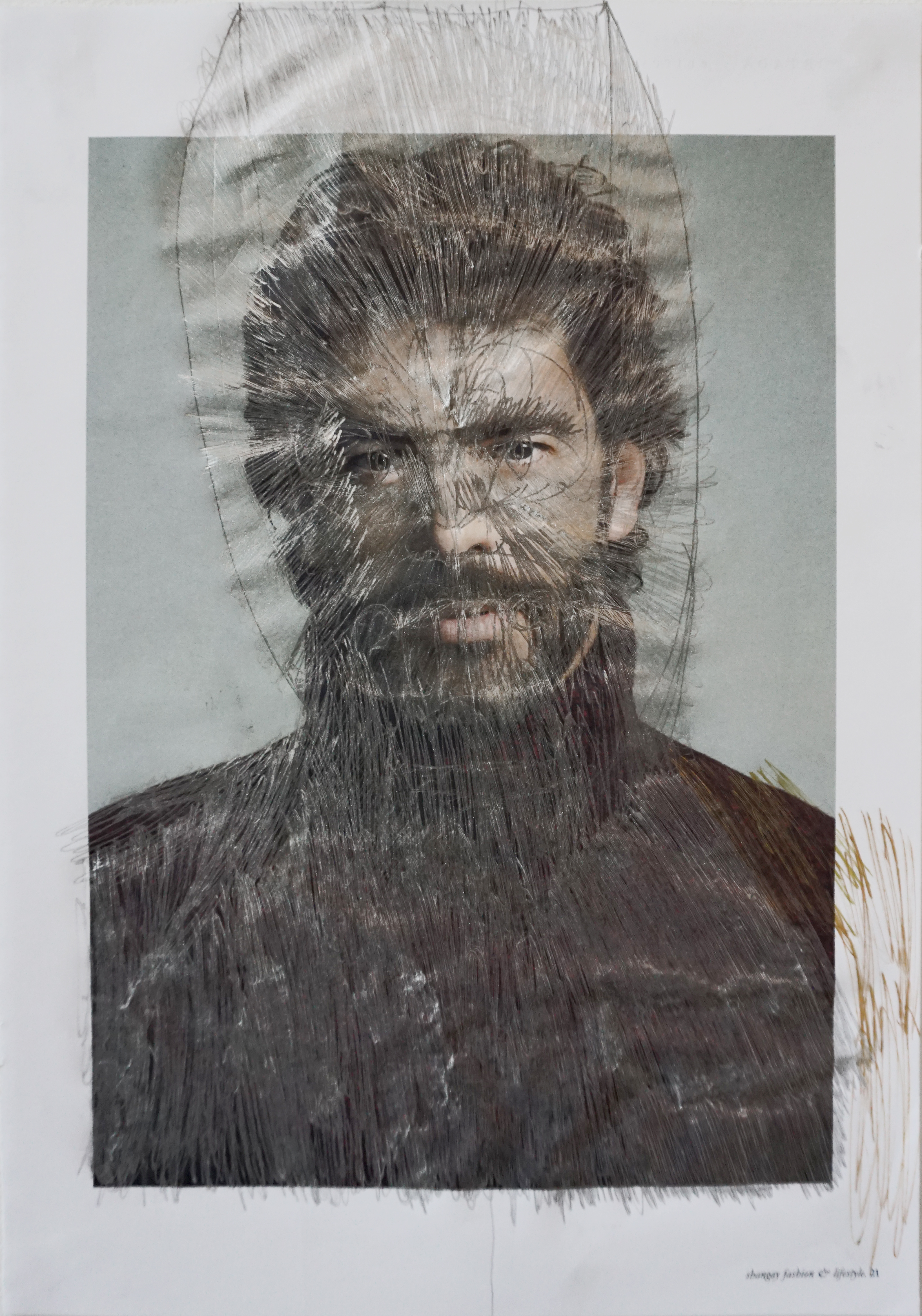 Sin título José Manuel Egea Fotografía de un rostro recortada de una revista, e intervenida con bolígrafo 38 x 28 cm 2016 X Bienal Cortesía: Debajo del Sombrero